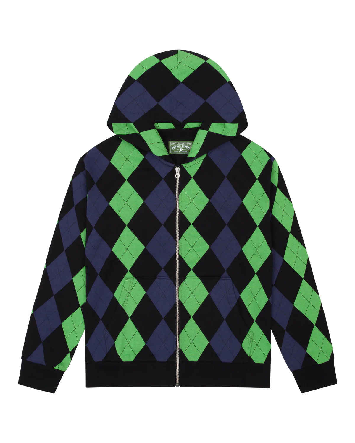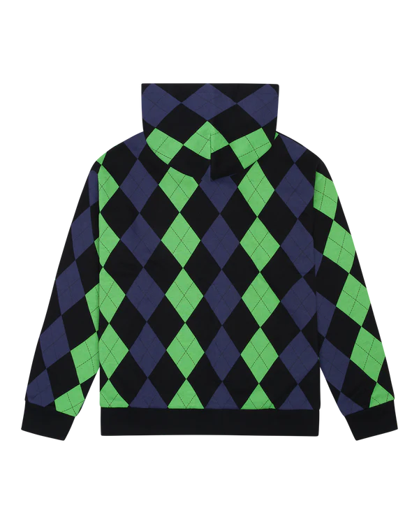 Denim Tears Derby Intarsia Hoodie – stylish, comfy, and uniquely designed with intarsia knit. Available in black, grey, and blue.