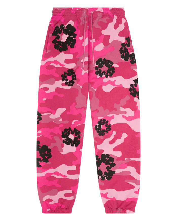 Denim Tears Pink Camo Wreath Sweatpants – stylish, comfortable, and bold with a symbolic wreath print. Perfect for streetwear lovers.