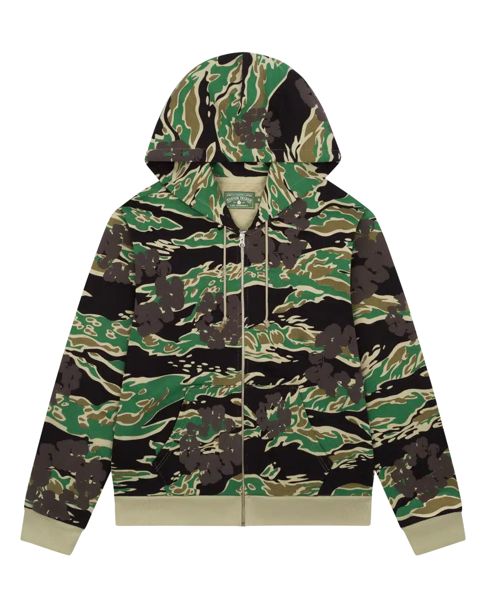 Green Camo Cotton Wreath Zipper Hoodie – soft, stylish, and street-ready with unique camo print and wreath zipper detail.